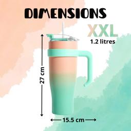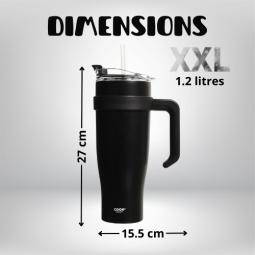Restez hydraté toute la journée et variez vos boissons ! Ce mug XXL 1,2L permet une prise en main confortable. Son bouchon 3 en 1 permet de boire à la paille, d'utiliser le clip ou d'ouvrir entièrement pour un remplissage rapide. + 10 sticks 9gr