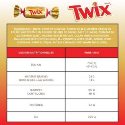 Sachet Twix Minis 620g avec environ 60 chocolats individuels alliant biscuit croustillant, caramel fondant et chocolat au lait.