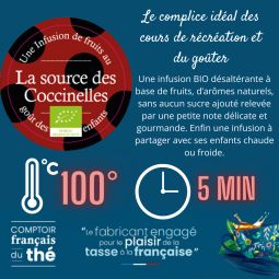 Infusion de fruits La source des coccinelles Bio - Infusion désaltérante à base de pomme, framboise et hibiscus À Infuser pendant 5 minutes à 95°C