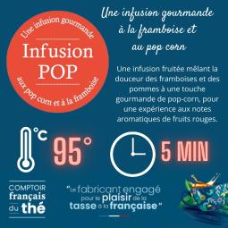 Infusion de fruits Pop - Infusion avec des framboises et des pommes sur fond de pop corn. À Infuser pendant 5 minutes à 95°C