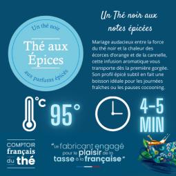 Thé épicé aux notes d'écorces d'orange, morceaux de cannelle et arômes À infuser pendant 4 à 5 minutes à 95°C