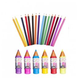Lot de 16 crayons de couleurs rangés dans une boîte en forme d'énorme crayon