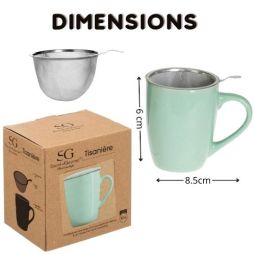 Assortiment de 5 thés fruités 20 gr (Coco Câline, Connivence, Mira-Bella, Kimono, Cocktail d'Orient) + 1 tasse à infuser vert d'eau 32cl. Une petite idée cadeau pour les amatrices de thés !