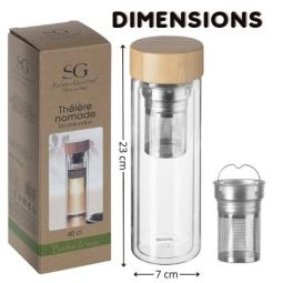 Assortiment de 5 thés et infusions 20 gr (Thé noir Guruchka, Thé vert des Oasis, Thé oolong caramel, Infusion Nectar royal, Infusion Folie d'agrumes) + 1 théière en verre 40 cl