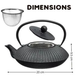 Assortiment de 5 thés et infusions 20 gr (Thé noir Guruchka, Thé vert des Oasis, Thé oolong caramel, Infusion Nectar royal, Infusion Folie d'agrumes) + 1 théière en fonte 80 cl.