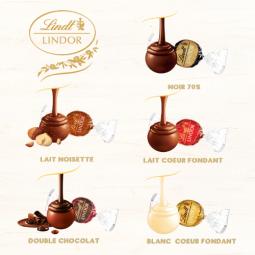 Assortiment Lindor bouchée chocolat lait coeur fondant, lait noisettes, lait caramel