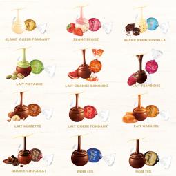 Sachet de 40 chocolats Lindor, 12 variétés, 12,5 g chacun. Un cœur fondant sous une coque délicate pour un plaisir gourmand à partager ou savourer à tout moment.