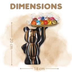 Statue ours noir garni d'un assortiment de 12 bouchées LINDOR assorties - Objet de décoration et présentoir à chocolats Matière: Polyrésine - Dimensions: 20 x 18 cm