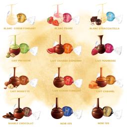 Mug collection "Eclats de saveurs" 32 cl garni de 15 Lindor - 5 variétés : noir 70%, double chocolat, lait coeur fondant, lait noisette, blanc coeur fondant.