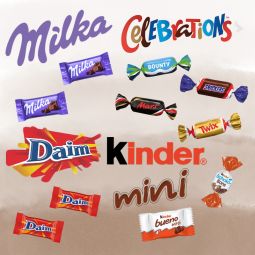 Coffret mug en céramique Jacques a dit 30 cl garni de 15 chocolats assortis : Mars, Snickers, Twix, Bounty, Kinder Schokobons, mini bueno, Daim Milka..