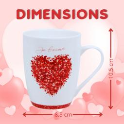 Mug Love en céramique, parfait pour savourer un café ou un thé tout en douceur. Un cadeau idéal pour la Saint-Valentin, à offrir à une personne que vous aimez, Garni de 20 chocolats Kinder Contenance 30 cl