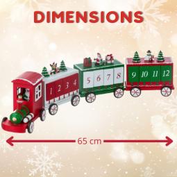 Calendrier de l'avent train en bois avec 3 wagons - Réutilisable Longueur : 65 cm - vendue vide 1 900 points