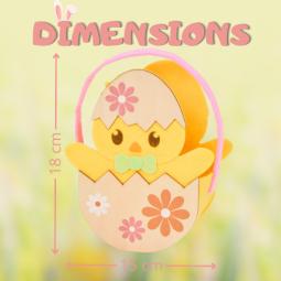 Panier feutrine poussin doux et coloré garni d'un sachet de 35 chocolats REVILLON et ROHAN : petits œufs 8gr Révillon, petits lapins croustillant lait, petits poussins 5gr, oeufs 18gr. Dimensions : 18 x 15 cm
