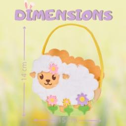 Panier feutrine mouton doux et coloré garni d'un sachet de 35 chocolats REVILLON et ROHAN : petits œufs 8gr, petits lapins croustillant lait, petits poussins 5gr, oeufs 18gr. Dimensions : 14 x15 cm