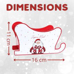Faites plaisir aux petits gourmands en leur offrant ce joli petit traîneau emballé dans un sachet cristal et garni de 33 chocolats Kinder Schokobons, Mini Bueno, Daim et 1 moulage Père Noël. Dimensions : 11x16 cm.