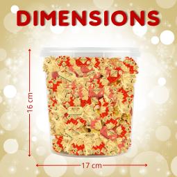 Tubo en plastique 100 pcs garni d'un assortiment de papillotes pralinés :lait céréales croustillantes, chocolat double praliné noisette. Dimensions 16x17 cm.