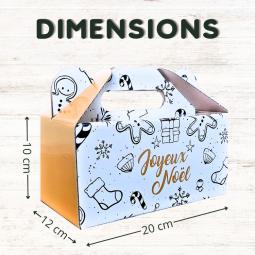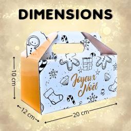 Ballotin Joyeux Noël garni de 100 chocolats Kinder Schokobons, Mini Bueno, Barre Country, Barre Maxi. Dimensions : 10 x 20 cm - Prêt à offrir.