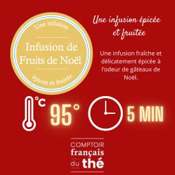 Infusion épicée délicatement à l'odeur de gâteaux de Noël. Infusez 5 minutes à 95°C. Sachet 20 g ou 100 g.