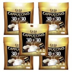 Composez un cappuccino savoureux en associant une dosette de café corsé et un sachet de poudre appelé TOPPING. Sachet de 30 dosettes et 30 topping emballés individuellement et hermétiquement, compatibles avec les cafetières de type Senseo®.