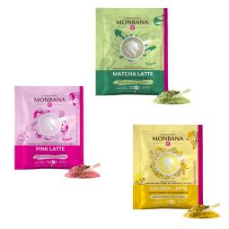 Trio Latte Mobana : L’énergie et la détente en 3 couleurs ! Matcha, Pink ou Golden : 3 boissons végan, sans additifs, prêtes en 2 min. Parfait pour un break gourmand et efficace au bureau ! Pack de 12 sticks