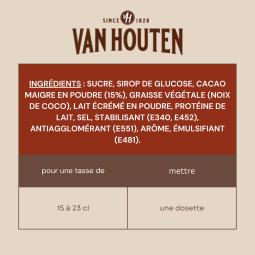 Chocolat en poudre lacté et sucré de qualité Van Houten au goût corsé et à la texture onctueuse. 16% de cacao - Compatibles avec les distributeurs automatiques. Poudre soluble à diluer dans du lait ou de l'eau chaude. Sachet 1 kg