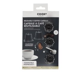 Lot de 3 capsules réutilisables, en plastiques. Cuillère, pinceau de nettoyage et filtre en inox.