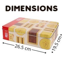 Boite à biscuits en métal (dimensions : 20x13 cm) garnie de : 2x6 biscuits Oréo 66gr, 4 barres chocolatées 37gr et 15 chocolats Oréo Milka Favourites.
