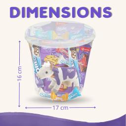 Box transparente garnie d'un assortiment de 8 biscuits Milka emballés individuellement : 2 brownies , 2 barres Oréo, 2 Lu pocket, 2 Cookies, 42 Milka Favourites et 1 peluche vache 10 cm