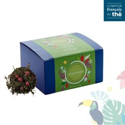 Sencha aux fruits rouges et pointe de vanille, thé vert gourmand et naturellement sucré. Parfum fruité avec groseilles entières, infusion savoureuse et aromatique, idéale pour une pause réconfortante.