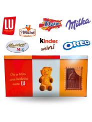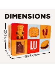 Boîte métal LU, renferme 40 biscuits Pocket, assortiments 60 chocolats, un tote bag pratique et élégant, ainsi que des accessoires pour le bureau ou la maison.