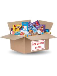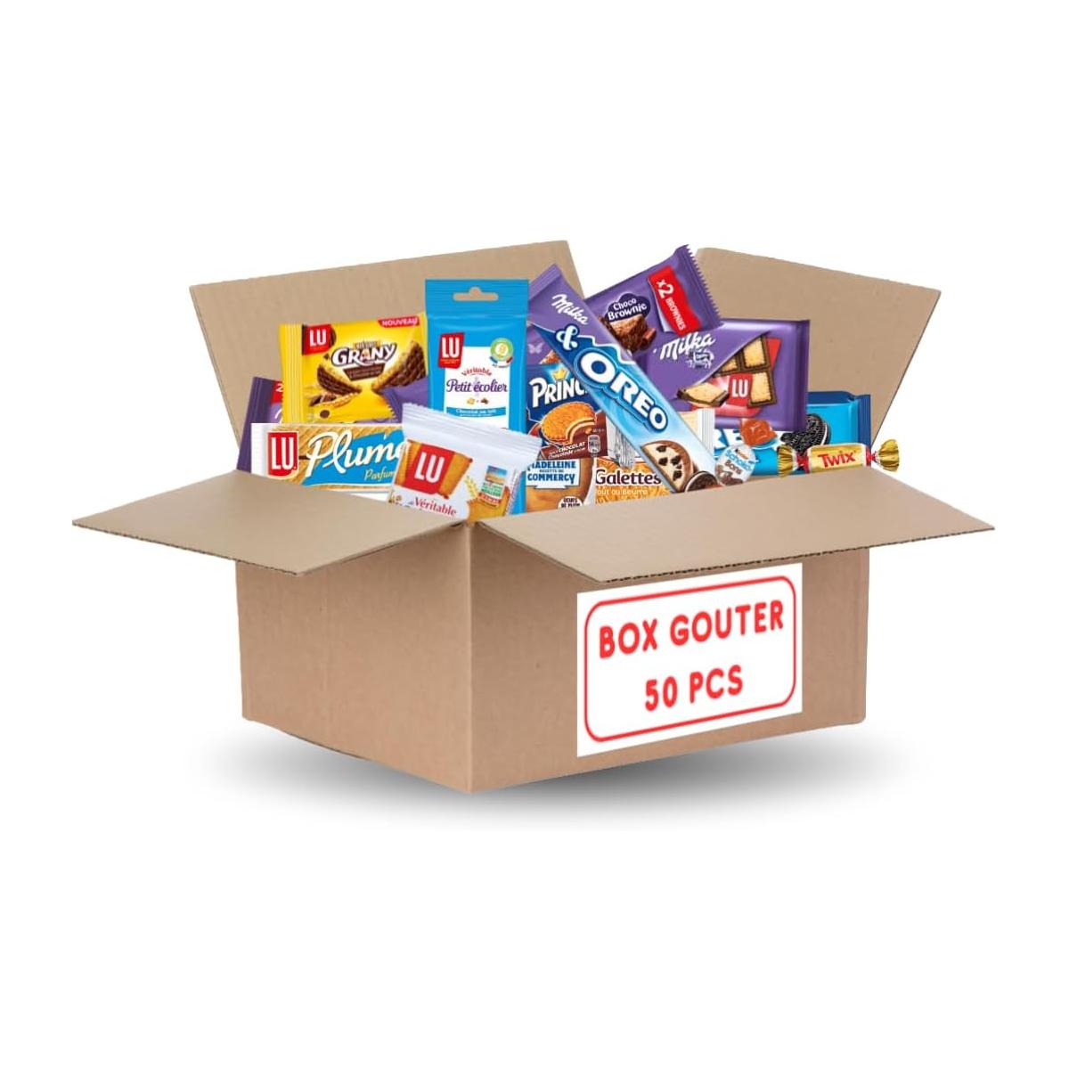 Détails de l'assortiment : Madeleine et Galette St Michel, Véritable petit beurre LU, Petit prince, Petit écolier, Gaufrette à la vanille, biscuit au chocolat Grany, Milka cookie, Milka Lu pocket, Milka brownie, Milka Oréo, Oréo Pocket, chocolats Milka nature, Kinder Schokobons, Kinder Mini Bueno, Daim, Mini Mars, Mini Twix, Mini Snickers et Mini Bounty.