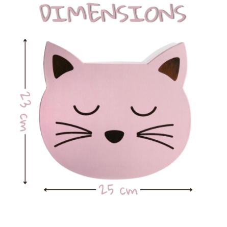 Boîte de rangement en forme de tête de chat, garnie de 100 bonbons dextrose et acidulés : sucettes, colliers, rolls, soucoupes, pailles et boules coco.