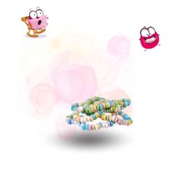 dextrose, maltodextrine, stabilisant: E420, polydextrose (E1200), acidifiant: E330, émulsifiant: E470b, arôme, poudre de jus de fruit, colorants : E160a, E160c, E163
