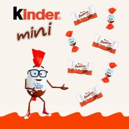 Sachet Kinder 40 pièces à motif. Prêt à offrir Composition : Schokobons, Mini bueno, Maxi et Country.