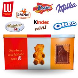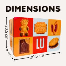 Boîte métal LU, renferme 40 biscuits Pocket, assortiments 60 chocolats, un tote bag pratique et élégant, ainsi que des accessoires pour le bureau ou la maison. Un coffret complet et généreux, parfait pour faire plaisir. Dimensions : 35cmx20cmx16cm