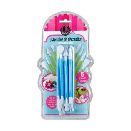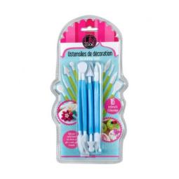 Ces 8 bâtonnets (16 embouts) vous permettent de manipuler de la pâte à sucre ou de la pâte d'amande afin de pouvoir la mettre en forme et créer des décors pour vos gâteaux. À vous de jouer !
