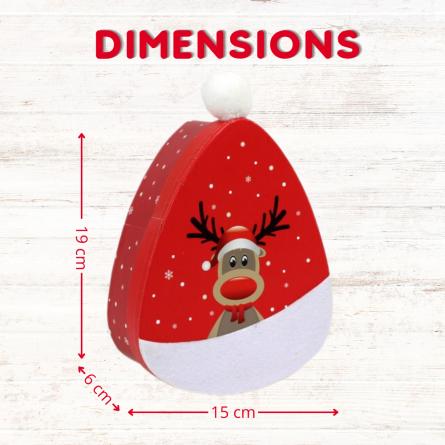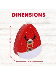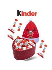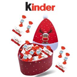 Boite Renne 19x15 cm avec pompon garnie de 40 chocolats Kinder Schokobons et Mini Bueno