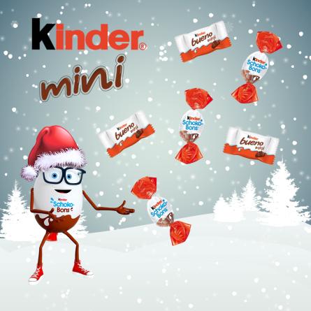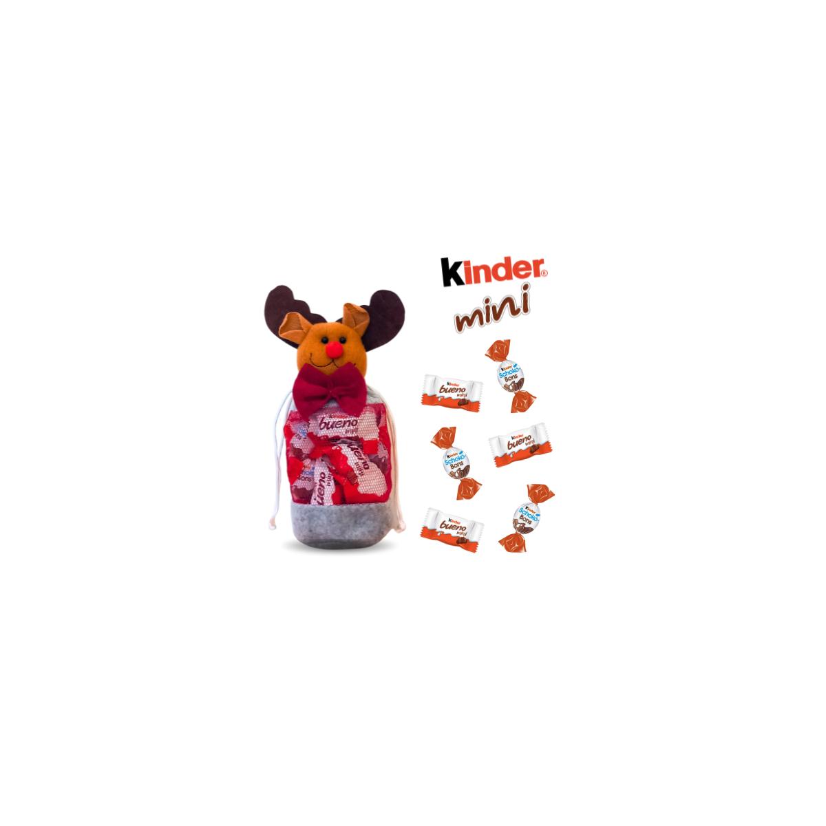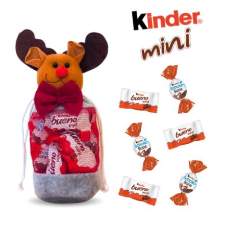 Petit sac en résille garni de 30 chocolats Kinder Schokobons et Mini-Bueno.