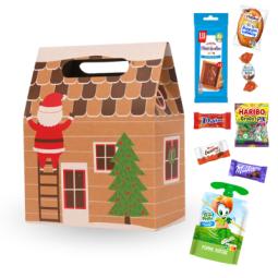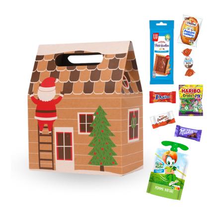 Pochette goûter 18x14,5 cm garnie de 24 gourmandises : Kinder Schokobons et Mini-Bueno, Milka nature, Daim, 1 compote gourde, 1 Lu Petit écolier 38gr, 1 madeleine 21gr, 1 sachet de bonbons HARIBO 30gr.