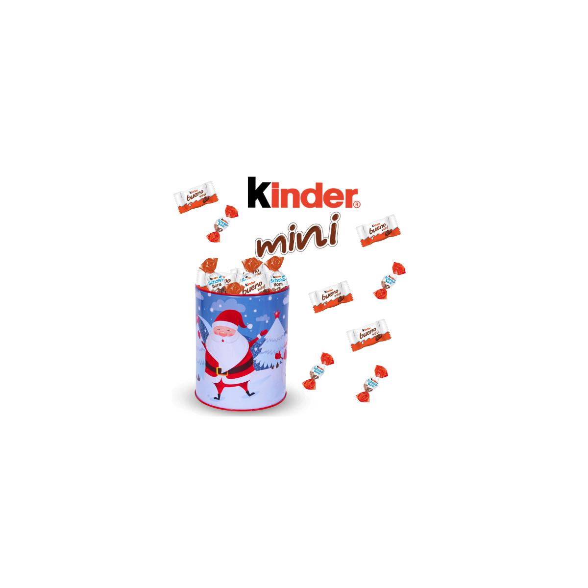 Tirelire en métal Père Noël 10 cm garnie de 25 Kinder Schokobons et Mini Bueno