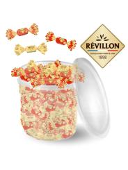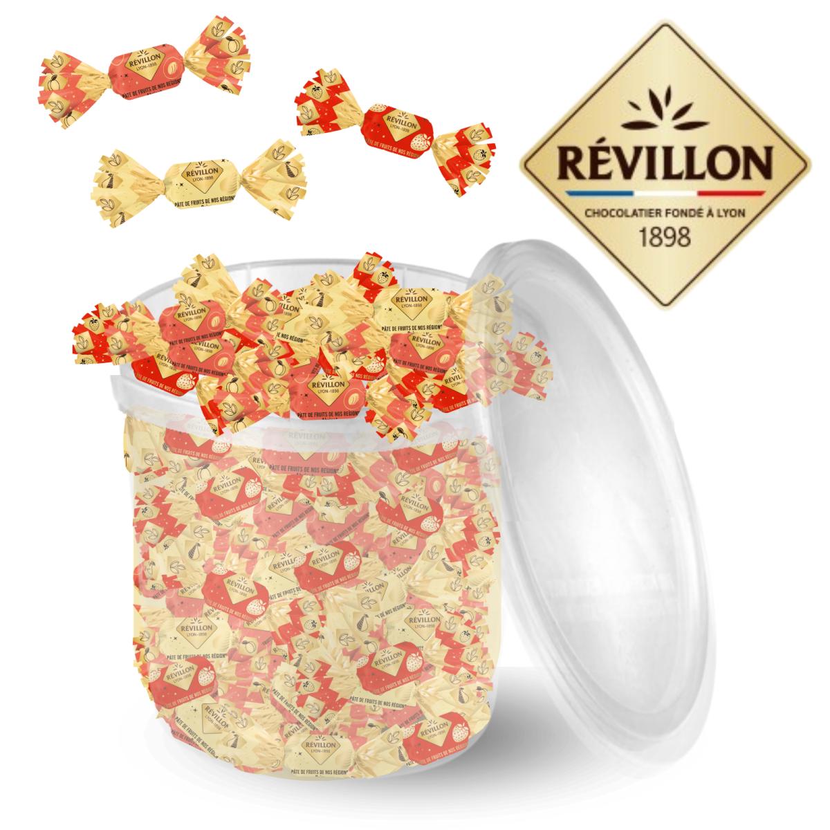 Tubo en plastique 100 pcs garni d'un assortiment de pâtes de fruits Révillon : abricot, poire, fraise.