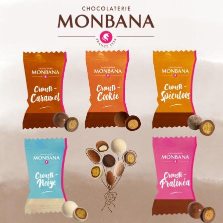 Mix craquant 5 variétés: crousti-neige, pralinéa, crousti spéculoos, crousti caramel, crousti cookie.