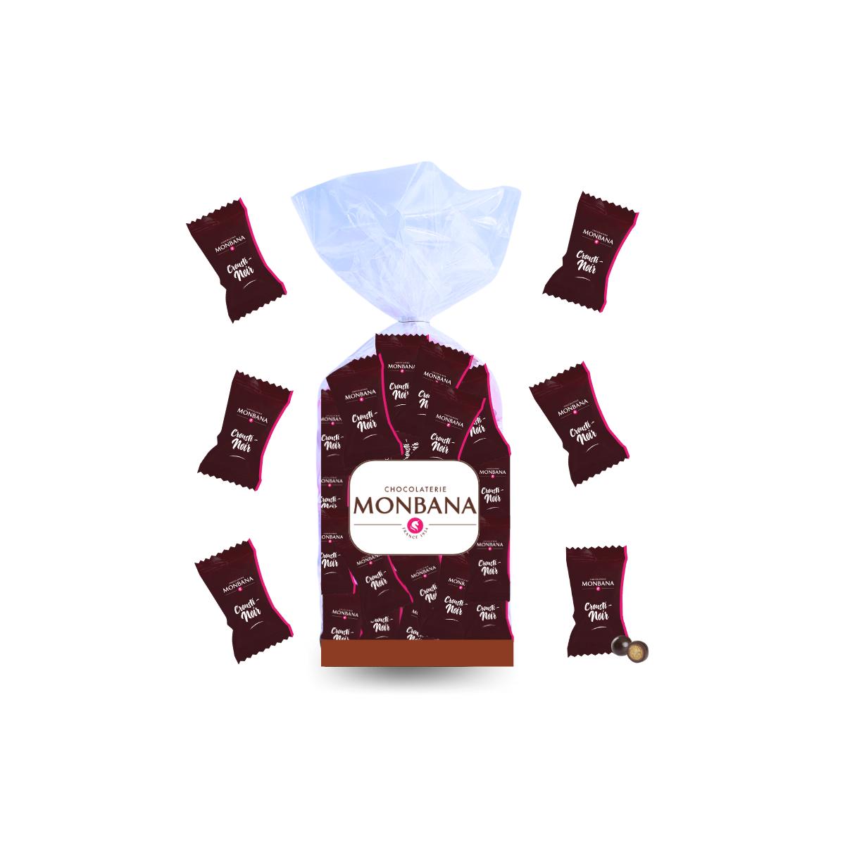 Crousti Noir MONBANA 2,5 g : bille croustillante enrobée de chocolat noir.