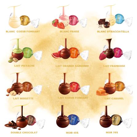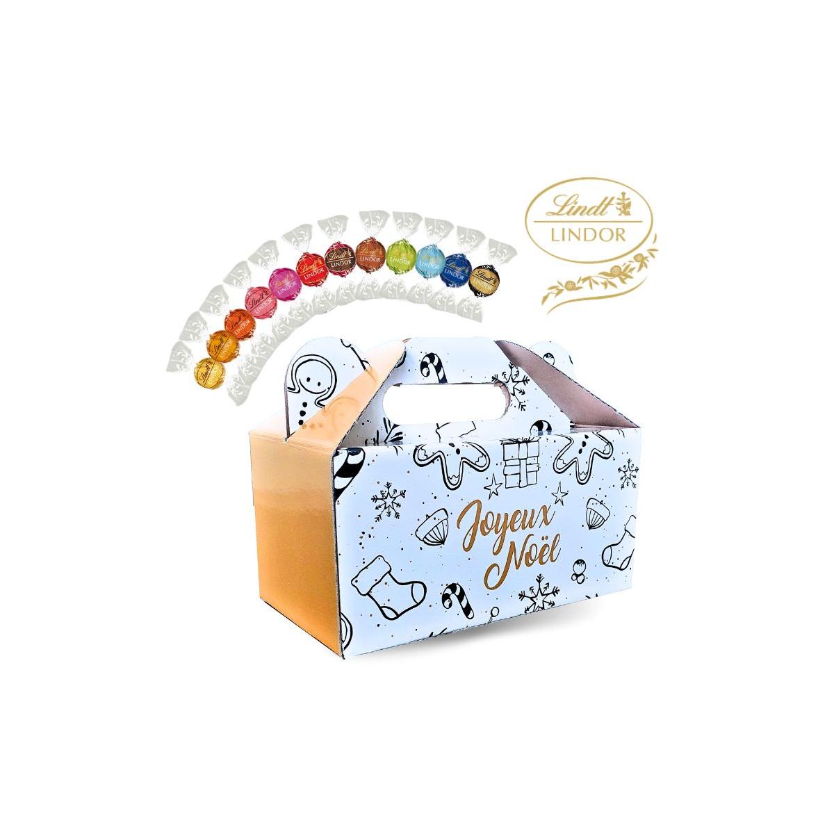Ballotin Joyeux Noël garni de 60 chocolats Lindor - 12 variétés : blanc, lait, noir