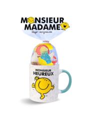 Offrez un cadeau original et gourmand avec ce mug Monsieur Heureux rempli de 25 bonbons acidulés gélifiés.