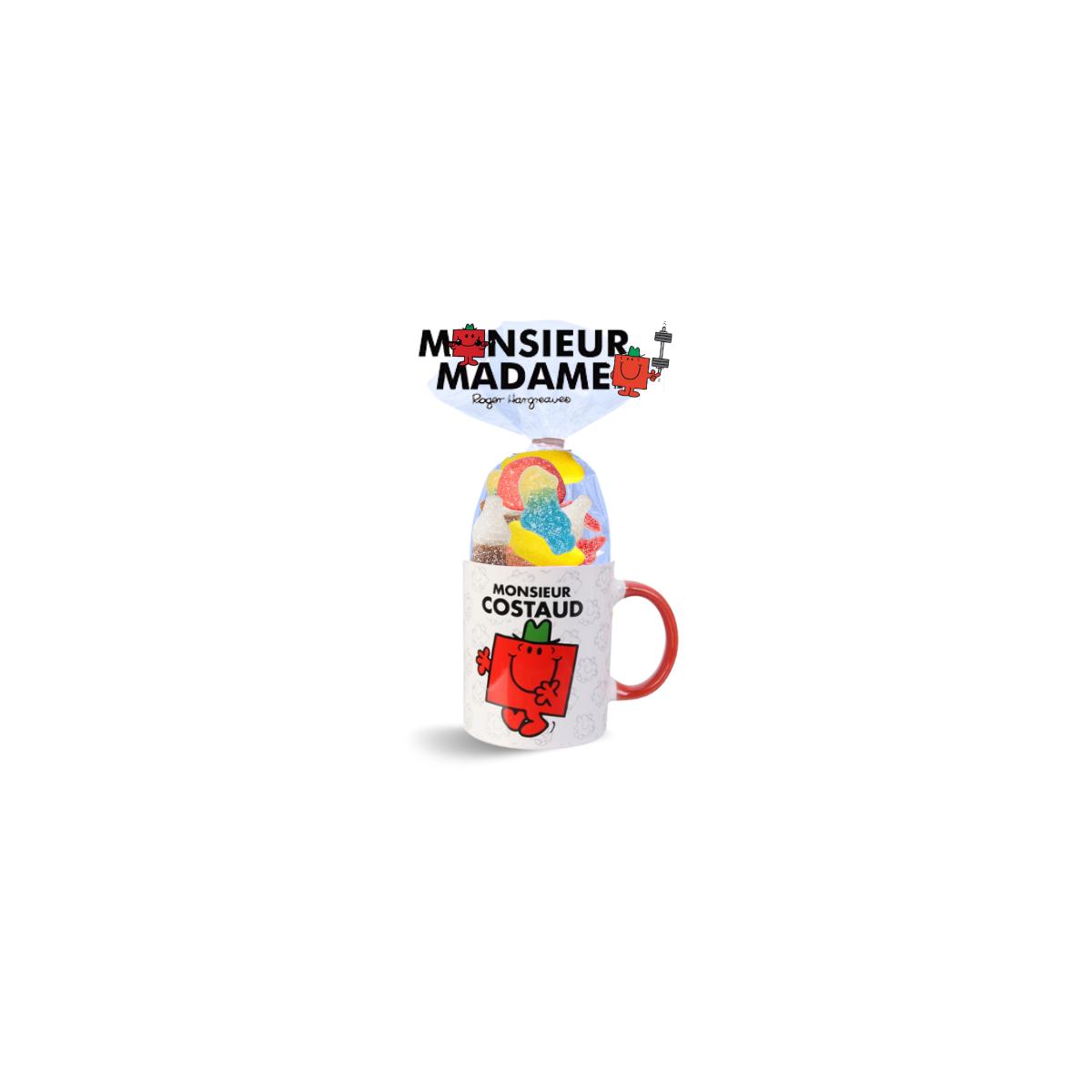 Offrez un cadeau original et gourmand avec ce mug Monsieur Costaud rempli de 25 bonbons acidulés gélifiés.