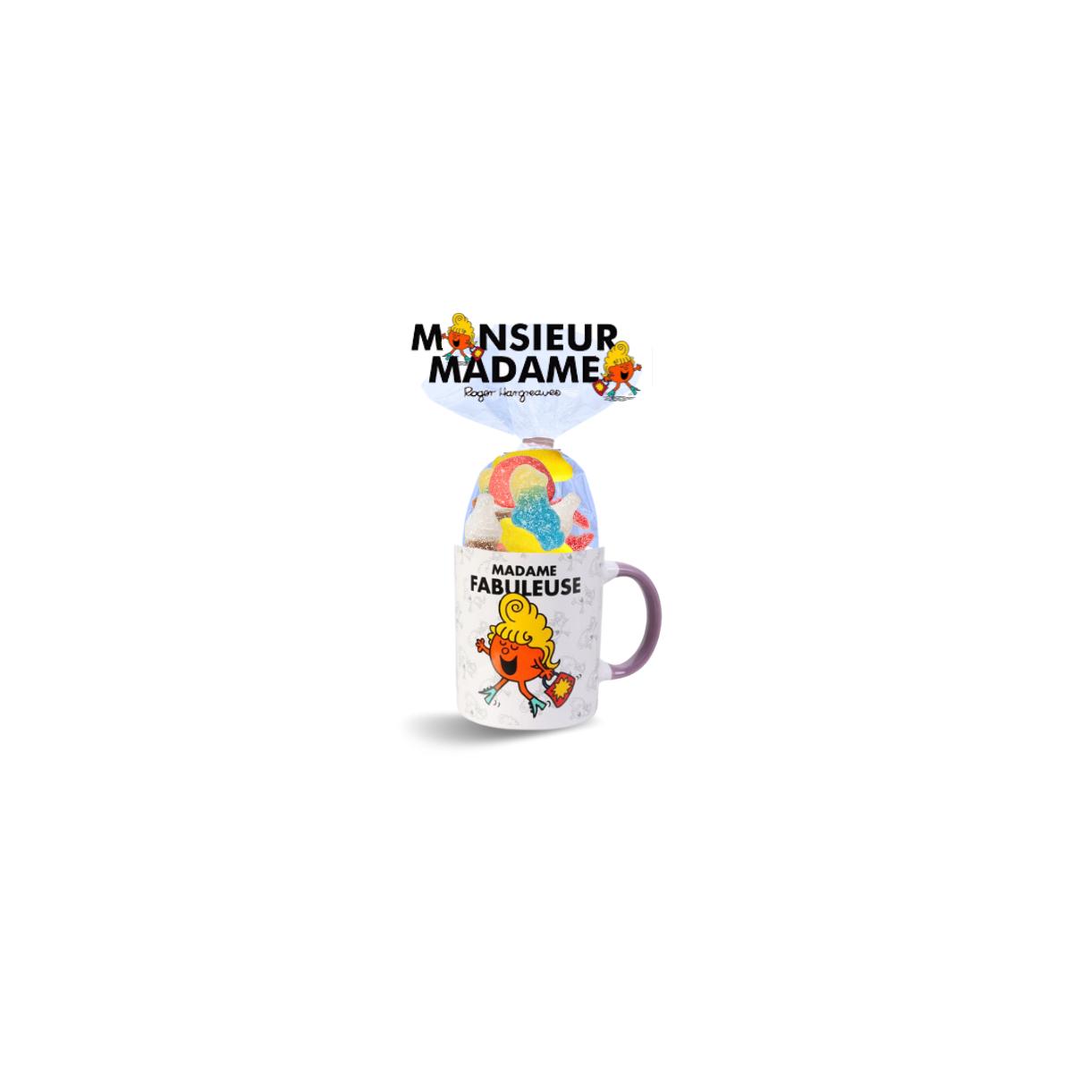Offrez un cadeau original et gourmand avec ce mug Madame Fabuleuse rempli de 25 bonbons acidulés gélifiés.