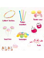 Accompagné d’un assortiment de bonbons gourmands, ce mug invite au partage et à la bonne humeur. Colliers de bonbons, pailles acidulées, boules coco, sucettes, soucoupes et bonbons rolls composent une sélection colorée, parfaite pour égayer les moments de détente entre deux réunions.