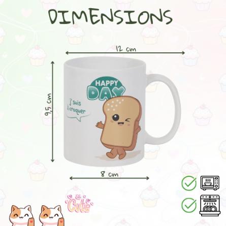 Mug Kawaï message "happy day" motif Brioche 32 cl + 20 Chocolats Gourmands – Le Duo Parfait pour des Pauses Café Ultra-Réconfortantes ! 🐱🍫