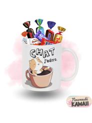 Mug 32cl KAWAÏ "Chat j'adore" + 20 chocolats
